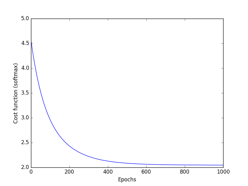 You should run your code for 1000 epochs. (Here, by epoch, I mean “step in the gradient descent algorithm.”). Note, however, that for each step, you have to calculate the gradient, and in order to calculate the gradient, you will need to evaluate the loss function many times.